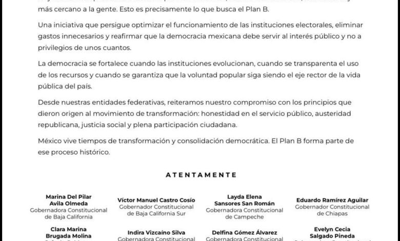 A través de un pronunciamiento conjunto emitido este viernes 13 de marzo de 2026, las y los gobernadores destacaron que esta iniciativa responde al mandato popular de mejorar el funcionamiento de las instituciones electorales, reducir excesos burocráticos y acercar el sistema democrático a la ciudadanía.