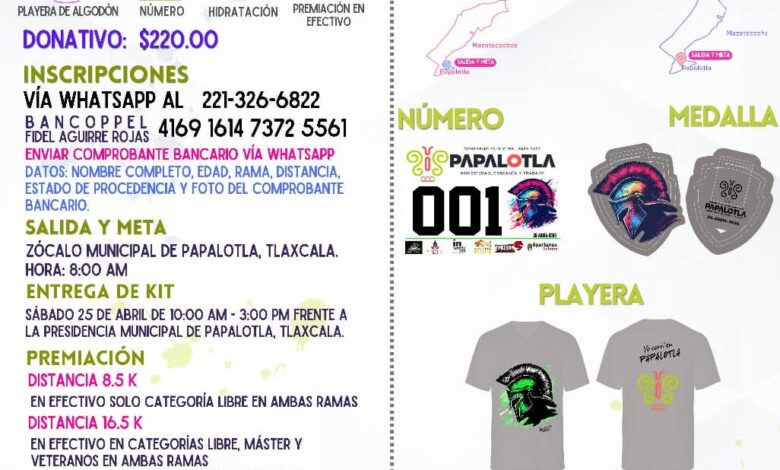 El Gobierno Municipal de Papalotla, en coordinación con Spartanos Atletas y distintos clubes deportivos de la región, organiza este evento con dos distancias para todos los niveles en 8.5 y 16. 5 kilómetros para quienes buscan una experiencia intensa pero también para los que quieren algo más exigente.