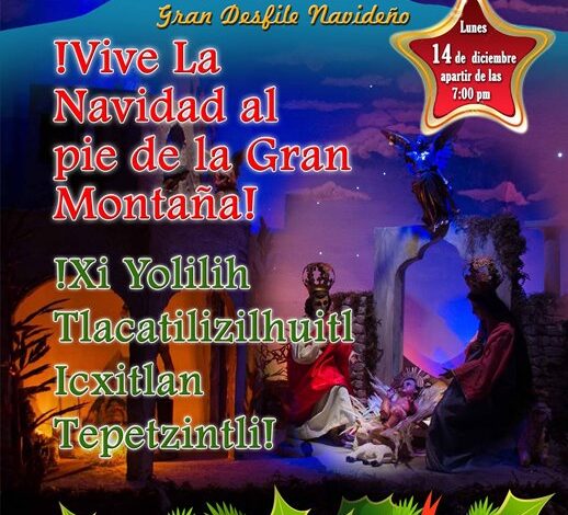 Así que para el próximo domingo se ofrecerá una conferencia de prensa y dar a conocer el cartel del desfile navideño con el eslogan ¡Vive la navidad al pie de la Gran Montaña! ¡Xi Yolilih Tlacatilizilhuitl Icxitlan! (náhuatl).