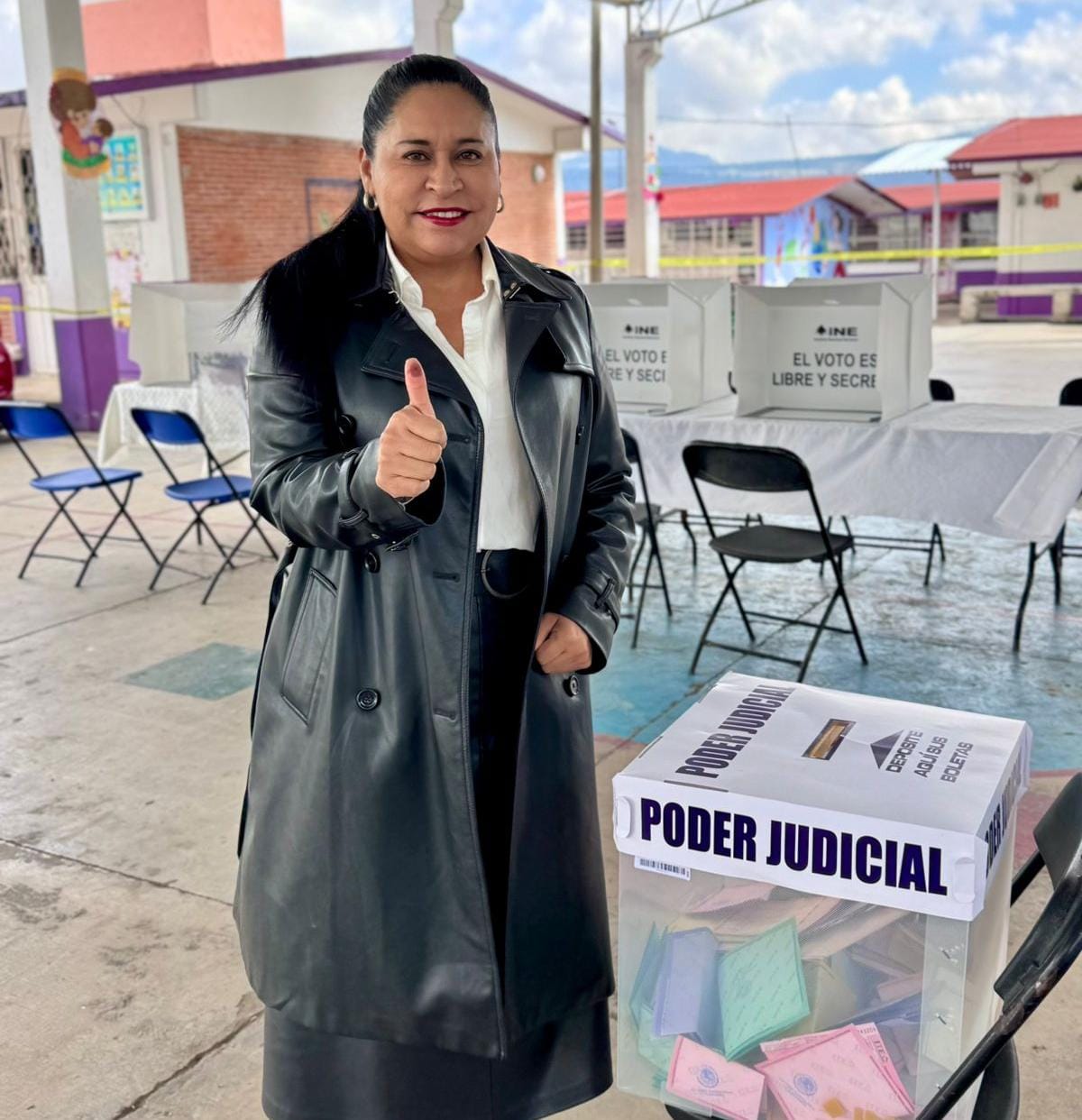 Ana Lilia Rivera emitió su voto en la comunidad de Cuaula, municipio de Calpulalpan, donde después de emitir su voto recordó que la elección judicial fue producto de una reforma constitucional como un mandato del pueblo de México para eliminar privilegios, defender la justicia, la honestidad, la honradez y erradicar el nepotismo y la corrupción en el Poder Judicial.