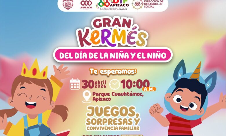 Con el objetivo de celebrar y reconocer la alegría de la niñez apizaquense, el Gobierno Municipal de Apizaco que encabeza el presidente Javier Rivera Bonilla, llevará a cabo una gran kermés con motivo del Día de la Niña y del Niño, el próximo 30 de abril en la explanada del parque Cuauhtémoc.