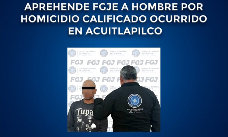 Derivado de labores de inteligencia realizadas por la Policía de Investigación, la Fiscalía General de Justicia del Estado (FGJE) aprehendió a Juan N., por su probable responsabilidad en el delito de homicidio calificado, ocurrido en el municipio de Tlaxcala.
