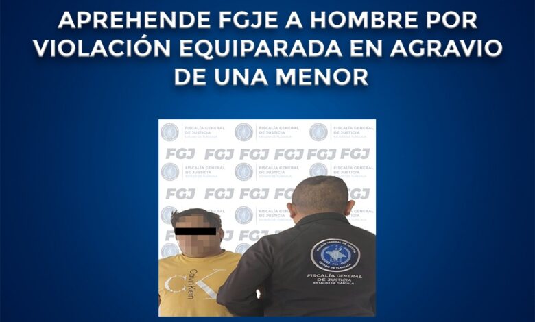 Como resultado de las labores de inteligencia realizadas por la Policía de Investigación, la Fiscalía General de Justicia del Estado (FGJE) aprehendió a José N., por el delito de violación equiparada, cometido en agravio de una menor de edad.