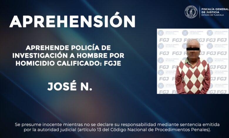 La Fiscalía General de Justicia del Estado (FGJE), a través de la Policía de Investigación, cumplimentó una orden de aprehensión en contra de José N., por su presunta participación en el delito de homicidio calificado, ocurrido en Chiautempan.