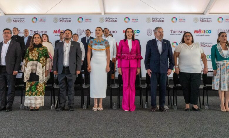 Acompañada por la gran familia turística, gobernadores, 32 secretarios de Turismo, líderes de cámaras y asociaciones, así como del secretario de Relaciones Exteriores, Juan Ramón de la Fuente, y de la secretaria de las Mujeres, Citlalli Hernández Mora, celebró la realización de 30 activaciones y eventos culturales, gastronómicos, artísticos, así como experiencias interactivas en Baja California, México, y en California, Estados Unidos.
