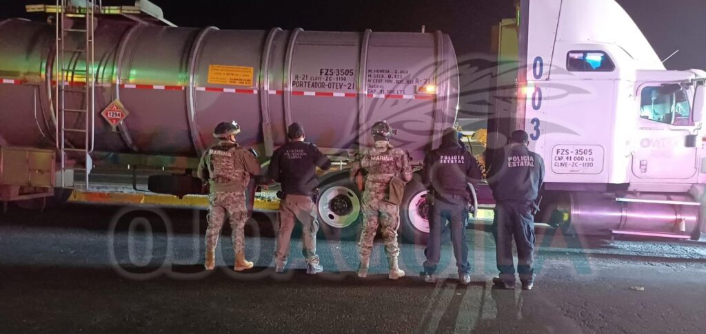 El vehículo asegurado es un tractocamión marca International, color blanco, con la razón social “Velsan” rotulada en color azul y placas del Servicio Público Federal, acoplado a un remolque tipo autotanque con capacidad aproximada de 41 mil litros. Tanto la unidad como el operador quedaron a disposición del Ministerio Público Federal, adscrito a la Fiscalía General de la República con sede en la capital del estado, para la integración de la carpeta de investigación correspondiente.