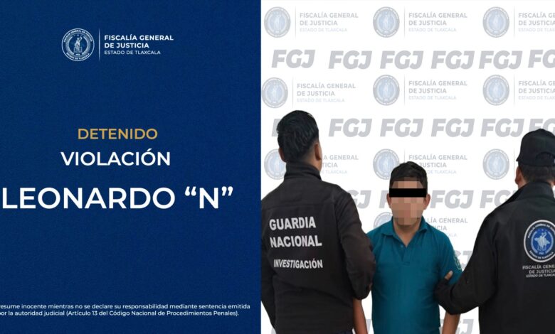 Derivado de trabajos de inteligencia realizados por la Policía de Investigación, la Fiscalía General de Justicia del Estado (FGJE) aprehendió a Leonardo N., por su probable responsabilidad en el delito de violación, en agravio de un menor de edad.