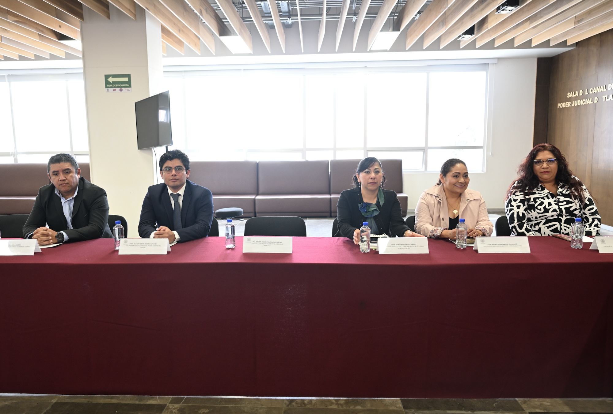 Por último, cabe destacar la participación de las juezas y jueces de los Órganos Jurisdiccionales con competencia en todo el Estado de Tlaxcala, Heriberta Guadalupe Morales Hernández, Jueza del Juzgado Itinerante, Ricardo Daniel Amaro Alvarado, Juez Primero de lo Laboral del Poder Judicial del Estado; y Yovani Carro Roldán, Juez de Exhortos.