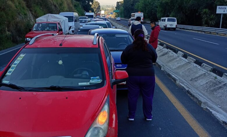 Choque múltiple de vehículos en la autopista Tlaxcala-Apizaco, a la altura de Ocotelulco, la movilidad se ve severamente afectada en estos momentos con sentido a la ciudad rielera.