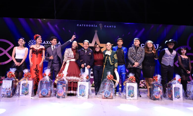 La gobernadora Lorena Cuéllar Cisneros encabezó la ceremonia de premiación del concurso “Talentos Cobat 2024” del Colegio de Bachilleres de Tlaxcala, en el que expresó su reconocimiento al esfuerzo y dedicación de los alumnos que participaron en el certamen de canto.