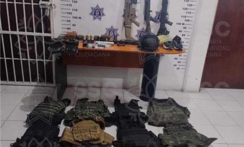 Al marcarle el alto al conductor, los uniformados observaron una actitud evasiva, por lo que realizaron una inspección preventiva, conforme a los protocolos de seguridad, localizando al interior de la camioneta: tres armas largas con un lanzagranadas, tres granadas, dos artefactos explosivos de fabricación artesanal, seis cargadores, 516 cartuchos útiles, 12 chalecos balísticos y equipo táctico.