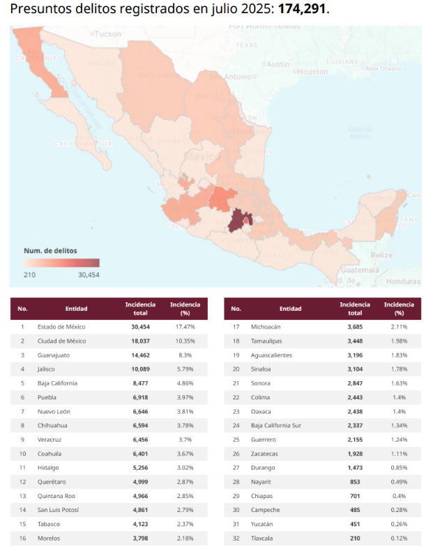 En julio se denunciaron 210 delitos en Tlaxcala: SESNSP