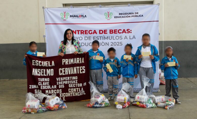 En Papalotla entregan apoyos de Estímulos a la Educación a alumnos de 13 escuelas de nivel básico