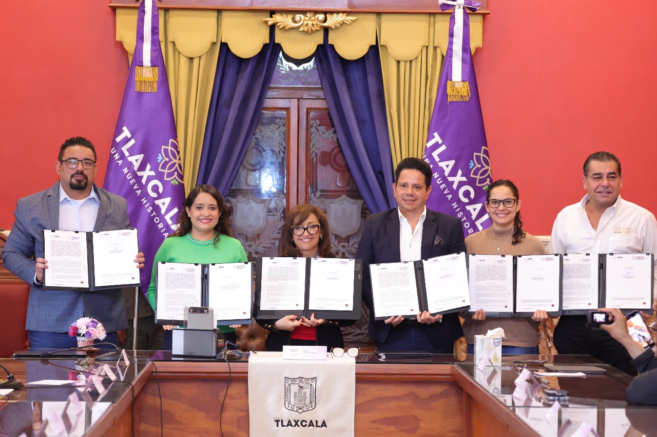 El convenio fue signado por el secretario de Gobierno, Luis Antonio Ramírez Hernández; la presidenta honorífica del Comité Consultivo de Bienestar, Fernanda Espinosa de los Monteros Cuéllar; el coordinador del Registro Civil, Víctor Hugo Mena Hernández; el oficial mayor de Gobierno, Ramiro Vivanco Chedraui, y la secretaria de Bienestar, María Estela Álvarez Corona.