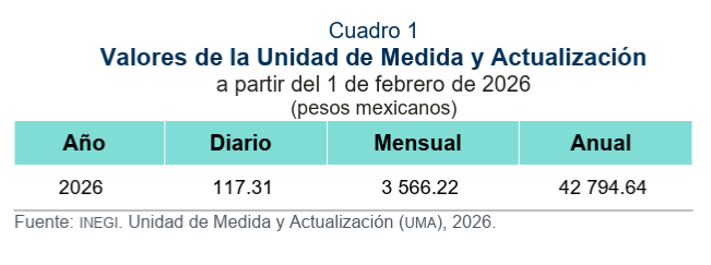 Con una variación del 3.69 por ciento en relación al 2025, a partir del próximo 1 de febrero entrará en vigor la nueva Unidad de Medida y Actualización (UMA) vigente para el 2026 que será de 117.31 pesos diarios.