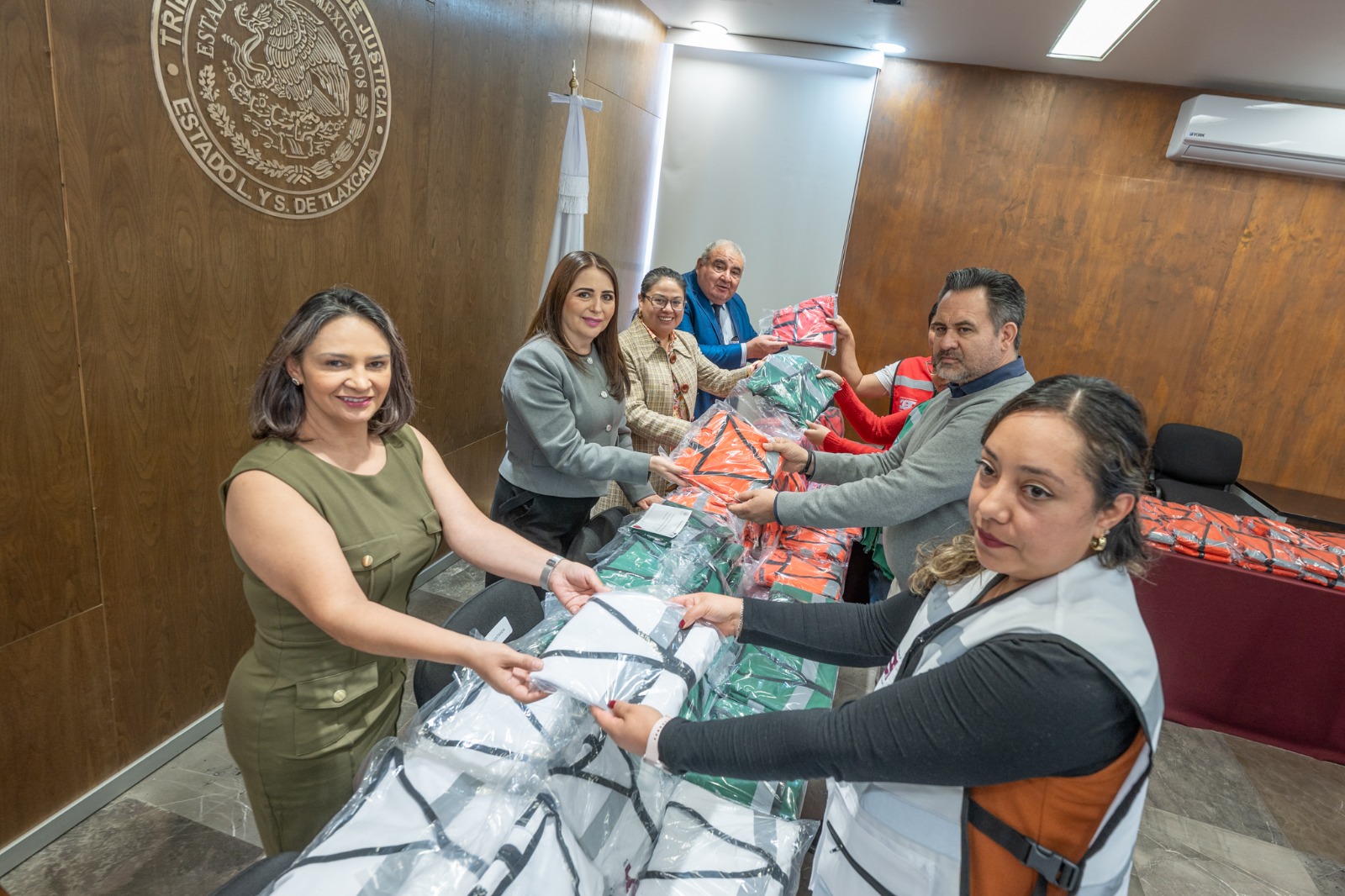 Como parte de las acciones de prevención que el Poder Judicial ha implementado, la magistrada presidenta, Anel Bañuelos Meneses, acompañada de los integrantes del Consejo de la Judicatura, entregó 196 chalecos a la Unidad Interna de Protección Civil y Primeros Auxilios, los cuales serán entregados a igual número de brigadistas de las diferentes áreas jurisdiccionales y administrativas que han sido debidamente capacitados para desempeñar funciones específicas en caso de una emergencia.