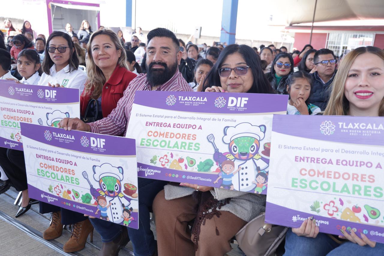 Con el firme compromiso de garantizar una alimentación digna, nutritiva y saludable para la niñez tlaxcalteca, la gobernadora Lorena Cuéllar Cisneros encabezó la entrega de equipamiento para comedores escolares del Programa de Alimentación Escolar, en su modalidad caliente, del Sistema Estatal para el Desarrollo Integral de la Familia (Sedif).