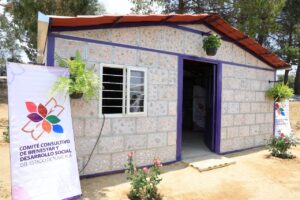 “Esto es el resultado de las voluntades que generan este tipo de apoyos. Tenemos aquí a Eva, ella es nuestra beneficiaria de esta casa. Anteriormente ella vivía en una casita muy chiquita y en condiciones no favorables y ahora, por parte del Comité de Bienestar, estamos haciendo la entrega de esta pequeña casa para que tú y tu familia, Eva, la puedan disfrutar”, y es sin costo para los beneficiarios, comentó.