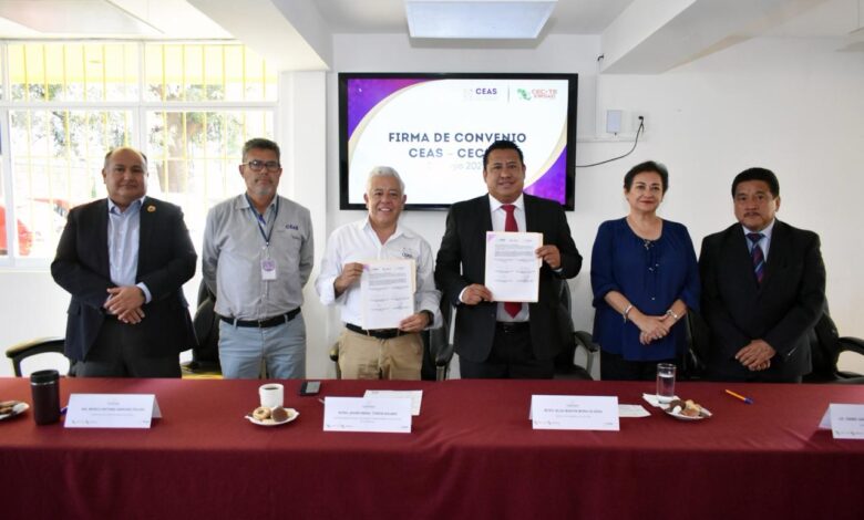 Con el objetivo de impulsar la formación académica y medio ambiental de sus alumnos, el Colegio de Estudios Científicos y Tecnológicos del Estado y los Centros de Educación Media Superior a Distancia (CECyTE-EMSaD) firmaron un convenio de colaboración con la Comisión Estatal del Agua y Saneamiento de Tlaxcala (CEAS) que permitirá la realización de acciones que fortalezcan sus competencias y promuevan la cultura ambiental.