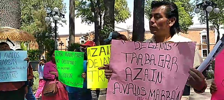 Comerciantes ambulantes del municipio de San Pablo Apetatitlán, se manifestaron este día en la ciudad de Tlaxcala para exigir al alcalde, Azaín Ávalos Marbán, que no los reubique y los deje trabajar.