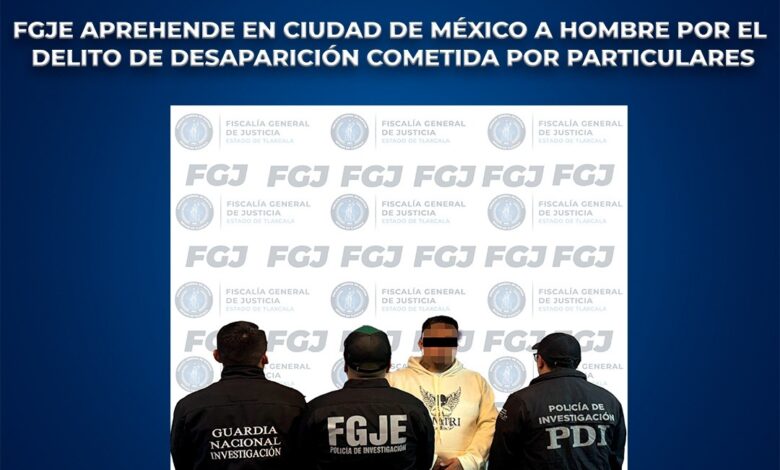 Derivado de los trabajos de inteligencia realizados por la Policía de Investigación, la Fiscalía General de Justicia del Estado (FGJE) aprehendió a Donovan Cristopher N., por su probable participación en el delito de desaparición cometida por particulares.