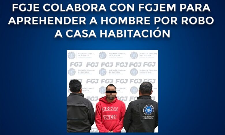 La Fiscalía General de Justicia del Estado (FGJE) colaboró con la Fiscalía General de Justicia del Estado de México (FGJEM) para aprehender a Francisco N., por el incumplimiento de las medidas cautelares impuestas dentro del proceso penal que enfrenta por el delito de robo agravado.
