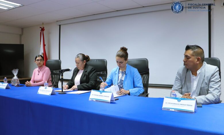En la firma estuvieron presentes la Vicefiscal General de Justicia del Estado, Liz Aurora Sánchez Fuentes; el Fiscal Especializado para la Investigación y Persecución de los Delitos en Materia de Trata de Personas, Óscar Braulio Angulo Terova, así como personal de la FGJE.