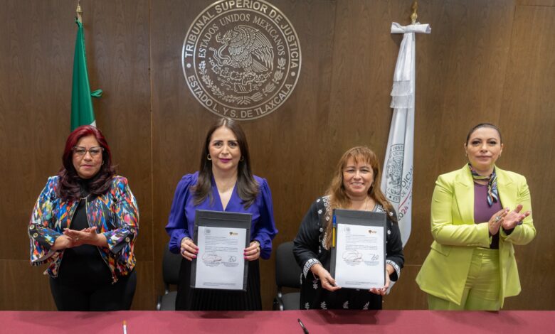 La presidenta del Poder Judicial de Tlaxcala, Anel Bañuelos Meneses y la representante legal y directora del Instituto Tlaxcalteca de Posgrados, NANTLI S. C., María Eugenia Figueroa Delgado, firmaron este día un convenio de colaboración que beneficiará a las y los servidores públicos de las diferentes áreas administrativas y jurisdiccionales con el fortalecimiento de sus conocimientos académicos.