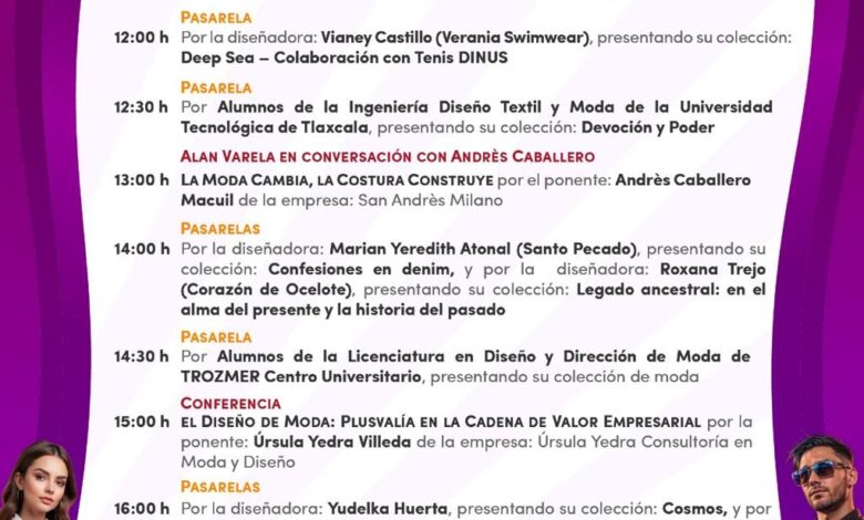 También participarán estudiantes de la Ingeniería de Diseño Textil y Moda de Universidad Tecnológica de Tlaxcala (UTT) con su colección “Devoción y Poder; así como alumnos de la licenciatura en Diseño y Dirección de Moda del Centro Universitario Trozmer, quienes presentarán colecciones que fusionan identidad, sostenibilidad e innovación.