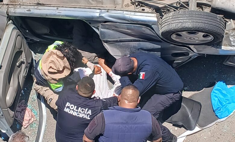 Se trató del impacto entre dos automóviles compactos, un Dodge Attitude y un Nissan Tsuru, este último que terminó en el fondo de una barranca cercana con dos tripulantes a bordo.