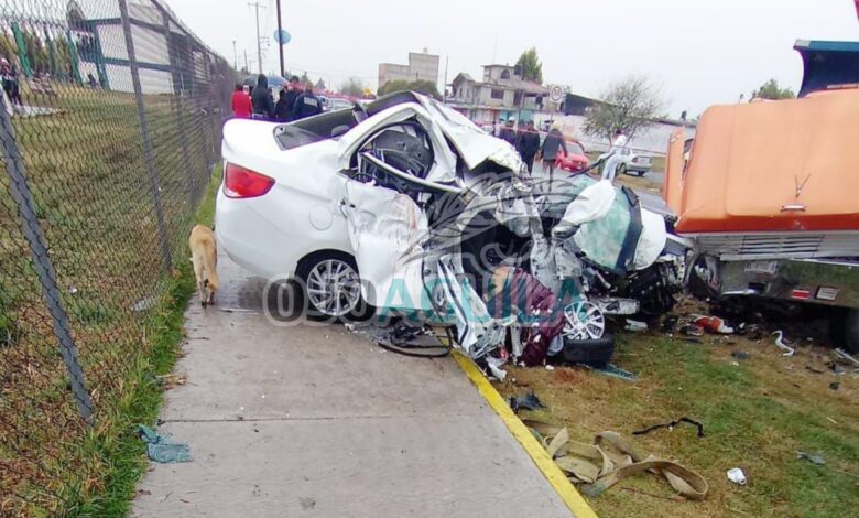 Los automotores involucrados fueron un camión de carga tipo torton y un compacto sedán color blanco, quedando prensado este último, por lo que personal de rescate con herramientas especializadas tuvo que rescatar a los lesionados y los cadáveres.