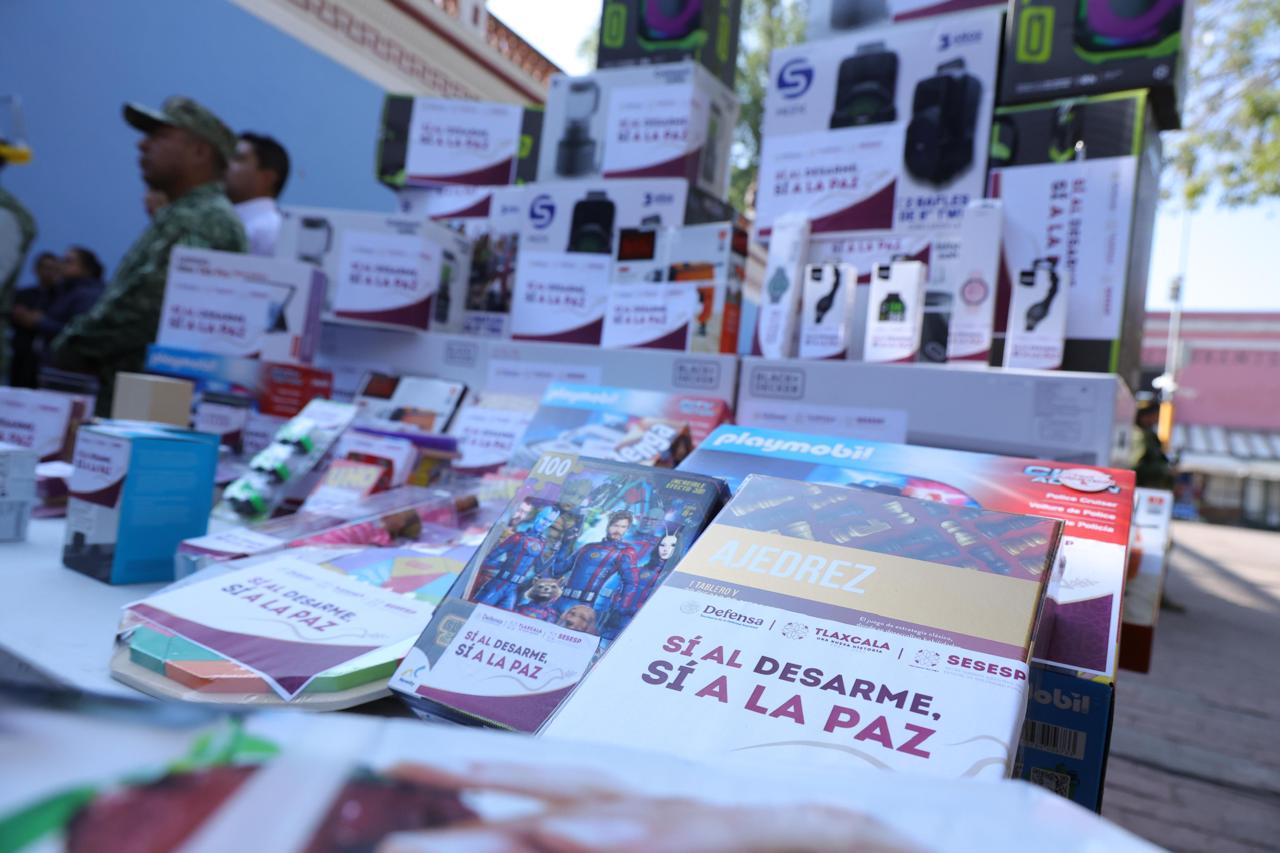 Precisó que, de 2023 a 2025 fueron retiradas 517 armas de los hogares tlaxcaltecas y 7 mil 199 juguetes bélicos, como parte de una política integral que busca evitar que niñas y niños normalicen la violencia.
