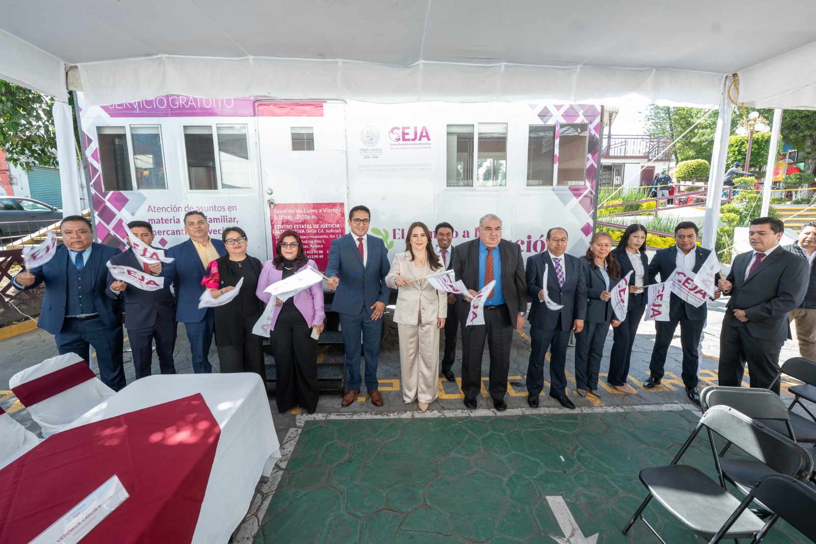 La presidenta del Poder Judicial de Tlaxcala, Anel Bañuelos Meneses y el presidente municipal de Tenancingo, Emmanuel Contreras Corona, dieron el banderazo de inicio de actividades de la Unidad Móvil del Centro Estatal de Justicia Alternativa (CEJAMÓVIL), la cual brindará sus servicios a partir de este día y hasta el próximo 22 de agosto, tiempo en el que los ciudadanos podrán acercarse para recibir asesoría y exponer sus casos para llegar a un acuerdo sin tener que recurrir a juicio.