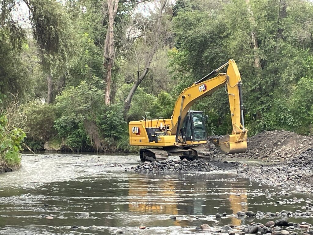 Acompañado por la Dirección de Obras Públicas, el Presidente supervisó personalmente el arranque de esta importante labor, que tiene como objetivo evitar afectaciones en las viviendas cercanas al cauce del río debido a su posible desbordamiento.