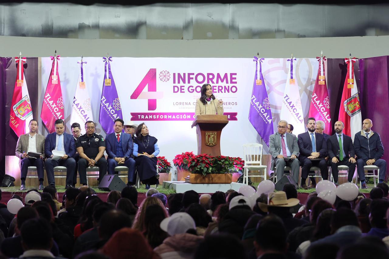 Durante la presentación regional de su 4to. Informe de Gobierno en Huamantla, la gobernadora Lorena Cuéllar Cisneros anunció inversiones sin precedentes y proyectos ancla que colocan al municipio como pieza central de un nuevo modelo de justicia territorial y descentralización económica, orientado a equilibrar el desarrollo entre regiones y detonar la prosperidad compartida en el oriente del estado.