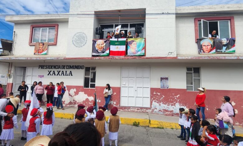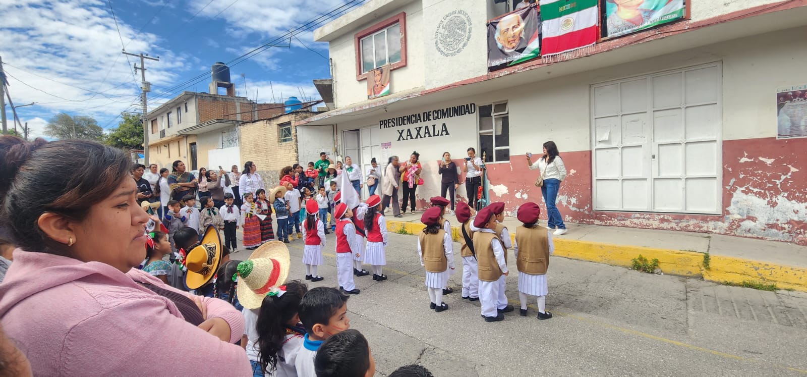 Está mañana la presidenta de comunidad de Xaxala Julia Aguilar Ahuatzi, recibió a toda la plantilla de alumnos y maestros del Jardín de Niños Leonarda Gómez Blanco, quienes acudieron en las instalaciones de la presidencia de comunidad para llevar a cabo una representacion de grito de independencia.