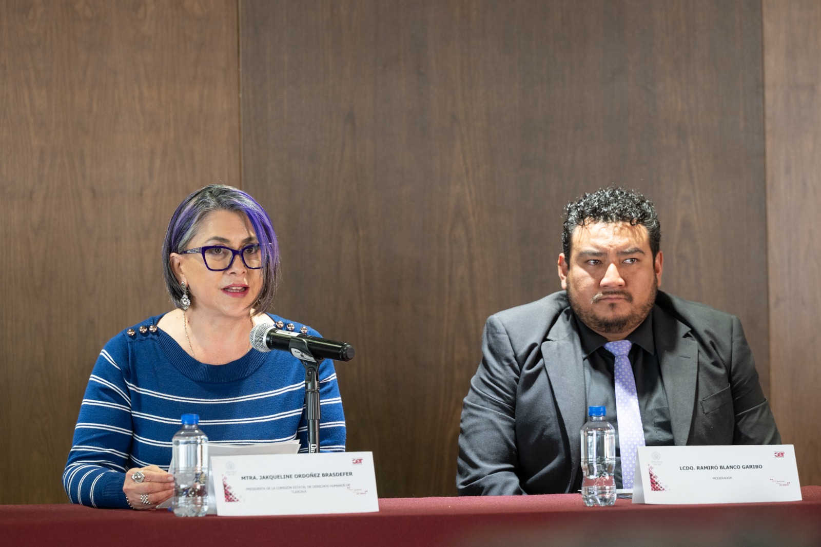 Las panelistas que participaron en este conversatorio fueron la jueza Aurora Mercedes Moctezuma Martínez; la Jefa del Departamento de Seguimiento Penal Acusatorio de la Secretaría de Seguridad Ciudadana, Alma Anahí Labrada Suárez; la visitadora general encargada de la Defensoría Número Uno de Tlaxcala, Erika Galaviz Diéguez; la activista Alejandra Mitlzin Sarmiento Xochitiotzin; mientras que el moderador fue Ramiro Blanco Gáribo.