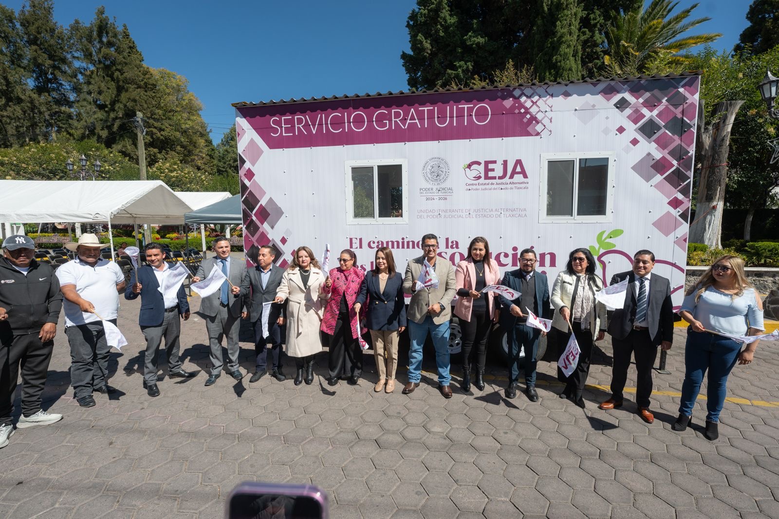 Autoridades del Poder Judicial del Estado de Tlaxcala, así como de los municipios de San José Teacalco y Tetla de la Solidaridad, dieron el Banderazo de salida de las Unidades Móviles del Centro Estatal de Mecanismos Alternativos de Solución de Controversias (CEMASC), que brindarán servicios gratuitos de mediación y conciliación de conflictos en materia civil, familiar y mercantil durante el mes de enero en su propia comunidad.