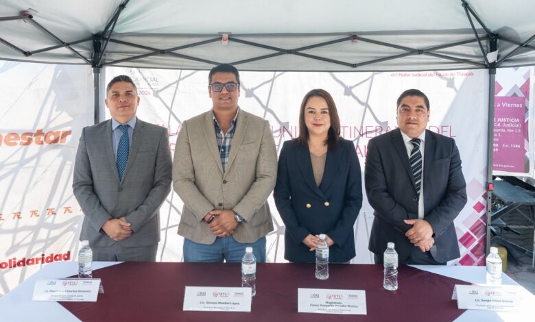 La Presidenta del Tribunal Superior de Justicia del Estado de Tlaxcala (TSJE), Magistrada Fanny Margarita Amador Montes, acompañada del Presidente del Órgano de Administración Judicial, Administrador Sergio Pérez George, así como de la alcaldesa Griselda Aguilar Macías y del alcalde Giovanni Montiel López, de San José Teacalco y Tetla de la Solidaridad, respectivamente, coincidieron en trabajar juntos para acercar la justicia a los ciudadanos, a través de un modelo que ahorra tiempo, economía e incluye a los justiciables sin llegar a un procedimiento judicial.