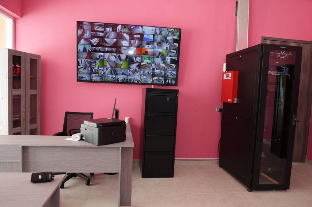 La guardería empresarial cuenta con cámaras de videovigilancia distribuidas estratégicamente para eliminar puntos ciegos, puertas con botones de pánico enlazados a cuerpos de emergencia y un sistema de identificación biométrica, que incluye huella digital y reconocimiento facial, lo que brinda certeza y tranquilidad a las familias trabajadoras sobre el cuidado de sus hijas e hijos.