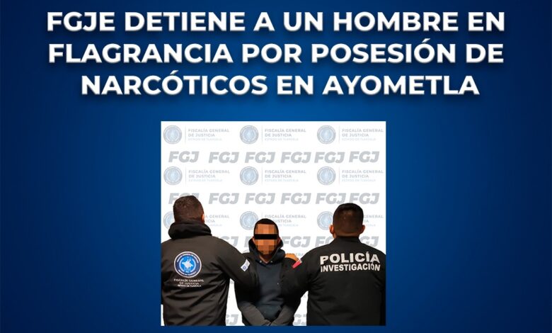 La Policía de Investigación de la Fiscalía General de Justicia del Estado (FGJE) realizó la detención en flagrancia de Santos Salvador N., por su probable responsabilidad en delitos contra la salud, en la modalidad de narcomenudeo.
