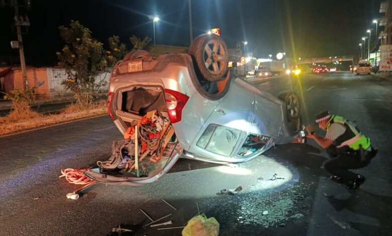 El primer incidente ocurrió en la Vía Corta, a la altura de Teolocholco, donde un vehículo Renault Sandero volcó de manera aparatosa. El conductor, quien se encontraba en evidente estado de ebriedad, resultó ileso pese a la magnitud del percance.