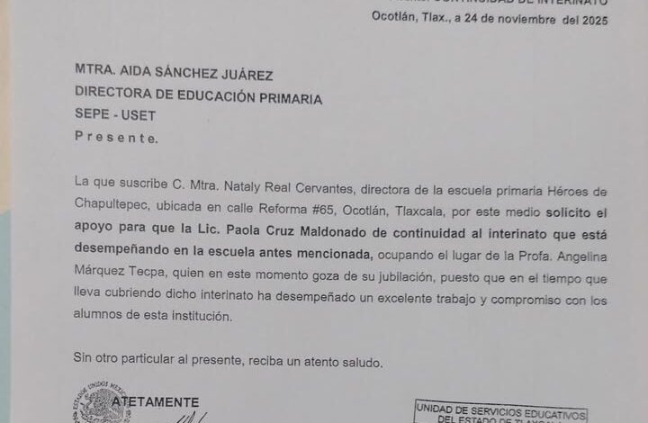 Padres de familia de la escuela primaria Héroes de Chapultepec, ubicada en la comunidad de Ocotlán, han convocado a un cierre de las instalaciones para la mañana de este miércoles. La medida de presión surge tras la salida de la profesora Paola Cruz Maldonado, quien atendía al grupo 5.º B, dejando a los alumnos sin titular frente a grupo.
