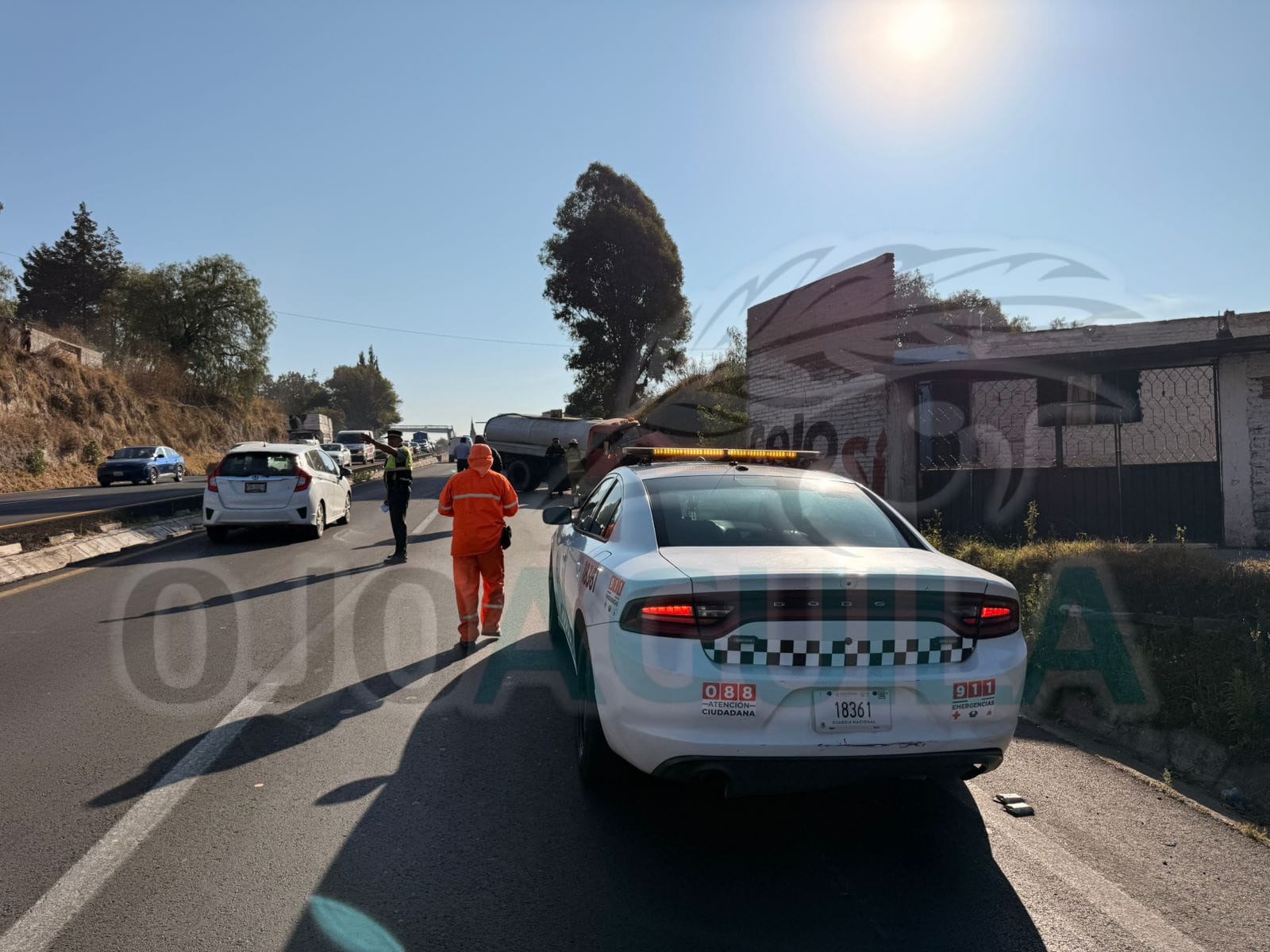 El accidente provocó intensa carga vehicular, con filas de automóviles de hasta dos kilómetros con dirección a Apizaco. Elementos de la Guardia Nacional implementaron labores de abanderamiento y control del tránsito, mientras se espera el arribo de grúas para retirar las unidades involucradas.