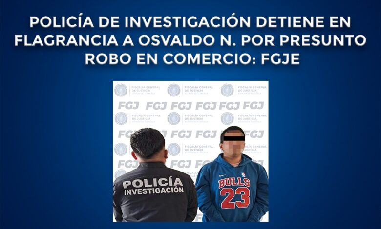 Elementos de la Policía de Investigación de la Fiscalía General de Justicia del Estado (FGJE) detuvieron en flagrancia a Osvaldo N., por su probable participación en el delito de robo.