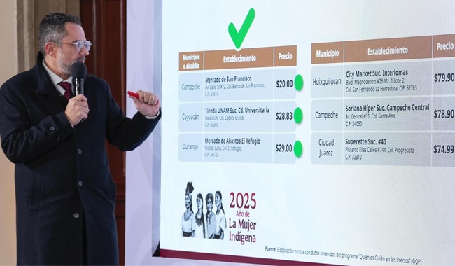 Durante su participación en la Conferencia Mañanera del Pueblo que encabeza la Presidenta de México, Claudia Sheinbaum Pardo, el procurador Iván Escalante Ruiz invitó a las personas consumidoras a utilizar el programa mediante el que pueden encontrar los precios mínimos y máximos de los más de 200 productos decembrinos y dónde pueden adquirirlos.