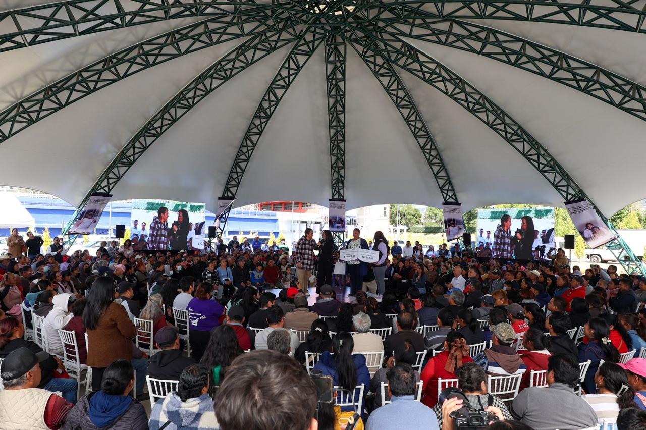 Como parte del evento, se realizó la entrega simbólica de cheques a las beneficiarias Felicitas Cuatle Nezahualcóyotl, Erika Mendoza Zecua y Maricela Gómez Moreno.
