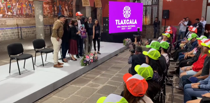 Fueron la gobernadora, Lorena Cuéllar Cisneros; la presidenta honoraria del Comité Consultivo de Bienestar, Fernando Espinosa de los Monteros Cuéllar; la titular del ITJ, Lucero Morales Tzompa; y Silvia Pluma Angulo, responsable del programa, quienes encabezaron este día en Palacio de Gobierno la entrega de vales y pidieron a los muchachos correr la voz para que más personas puedan atenderse.