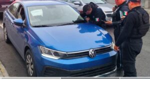 El vehículo fue identificado como un Volkswagen Virtus, modelo 2024, color azul, con permiso provisional CAP5605 y NIV WVW3B4D22RT054289, el cual ya contaba con reporte de robo.