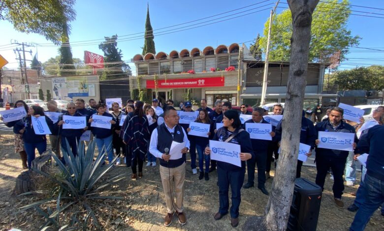 Militantes y miembros de la dirigencia estatal realizaron esta mañana un pronunciamiento frente a la Delegación del Instituto en Tlaxcala